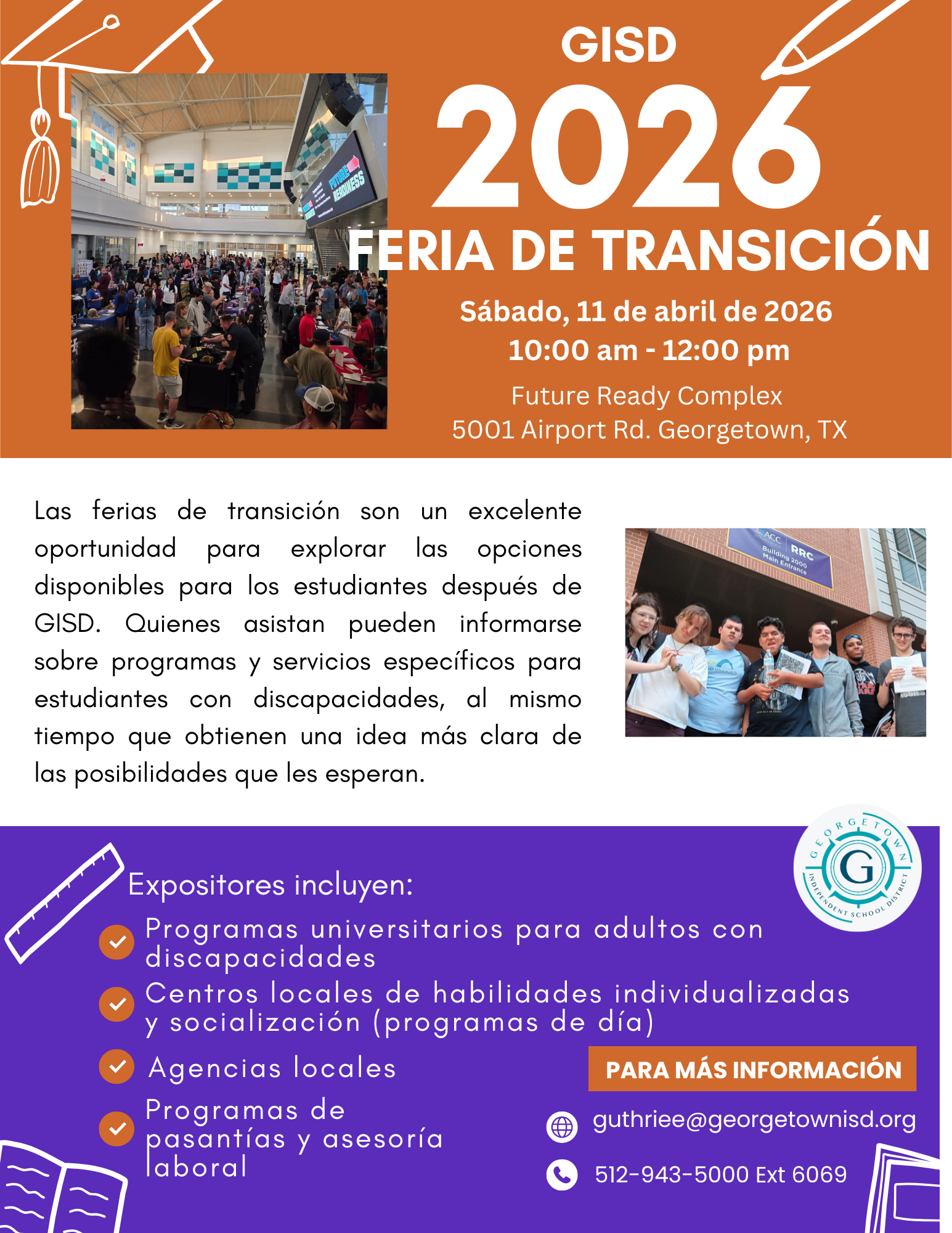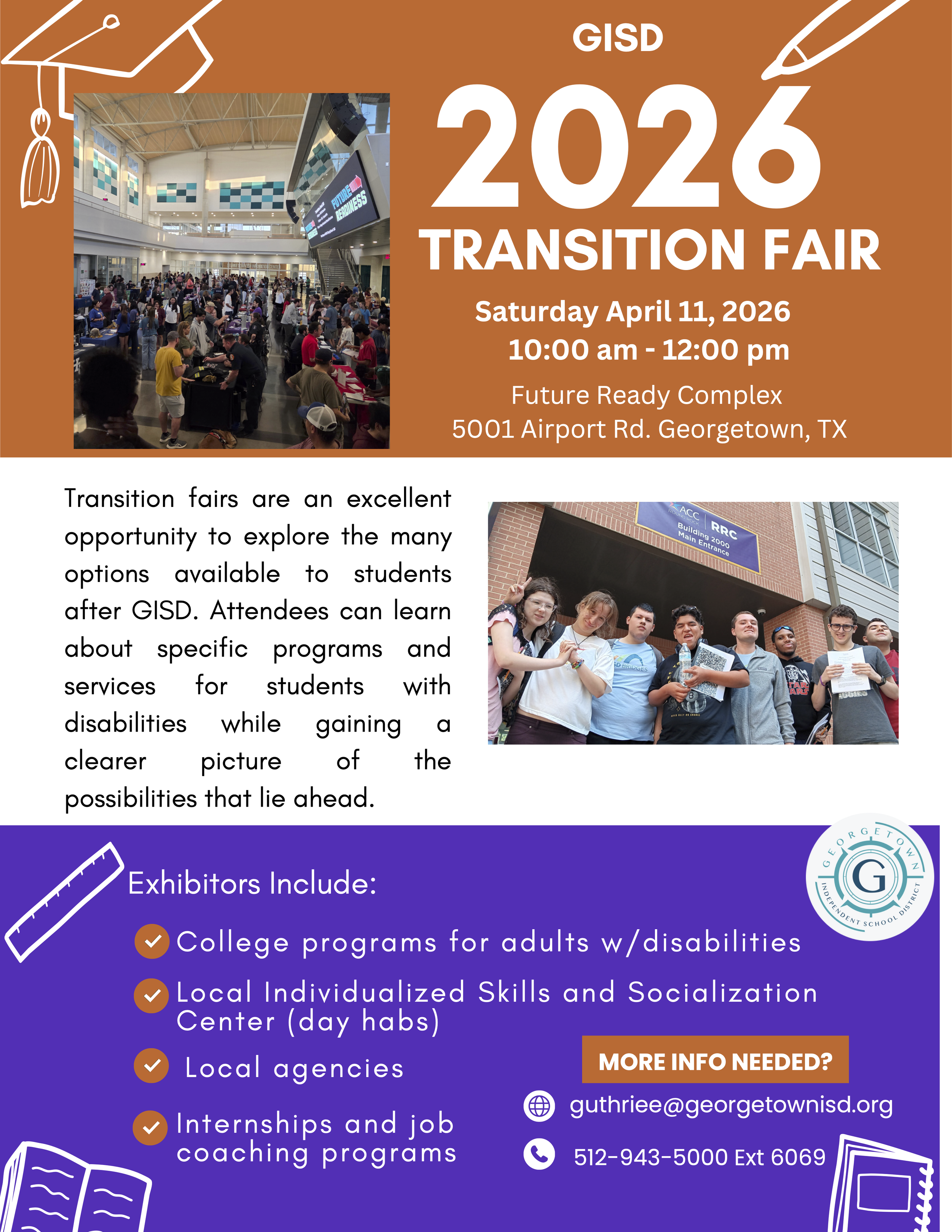 Mark your calendars for the 2026 GISD Transition Fair on Saturday, April 11. Transition Fairs are an excellent opportunity to explore options available to students after high school.