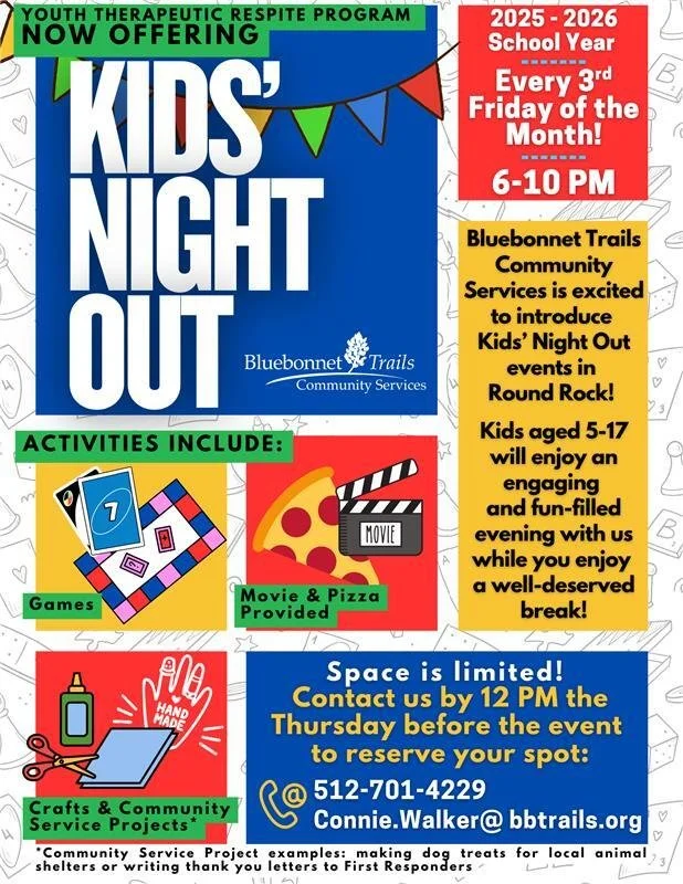 From Bluebonnet Trails: Kids’ Night Out Third Friday of Every Month